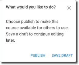 In order to publish a course in Playbook, an administrator must have Silver Admin access or higher in Manager. If they only have Playbook Admin access, they will be able to save the course as a draft and an administrator can open and publish it after reviewing the information. For information on admin levels, see Access Levels .