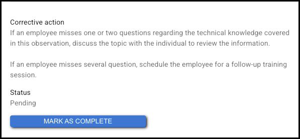 - Proceed to the Marking Corrective Action Complete in Manager section below for next steps.