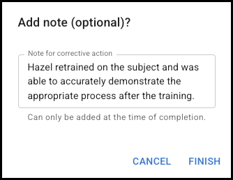 - Coach reviews the Corrective Action and has the user complete the Corrective Action as listed.
