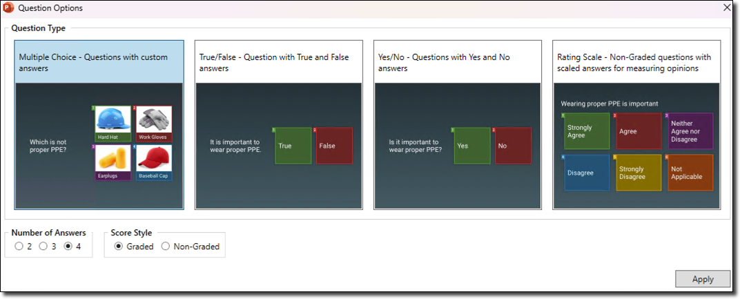 Select a Question Type then click on Apply.