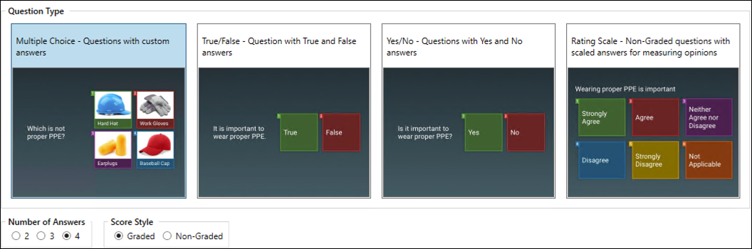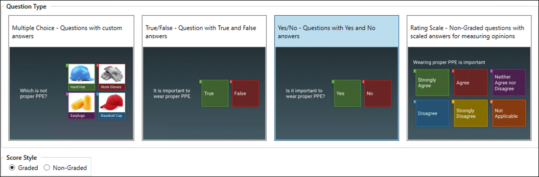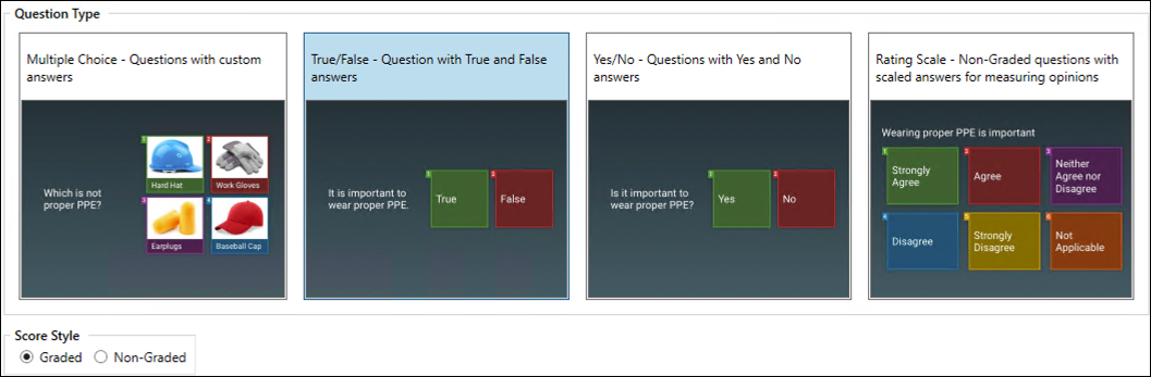 Score Style, Graded is the default, Non-Graded questions will not count towards a score