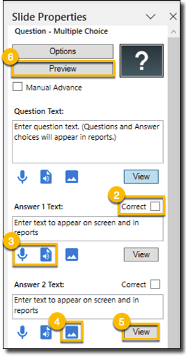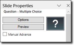 By default the question slide will be a Multiple-Choice type of question, see Change Question Type for other options.