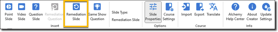 - From the Alchemy Creator ribbon, select Remediation Question Slide