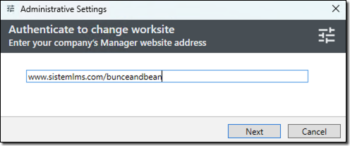- You will be required to authenticate your credentials with an automatic window prompt. Enter your Manager site/company name, then select Next.