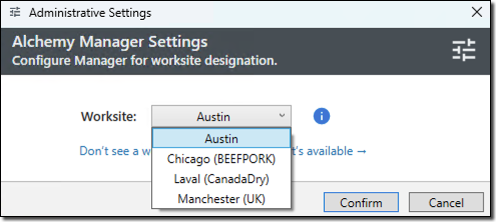 - Select the previously configured worksite from the dropdown menu, then click Confirm.