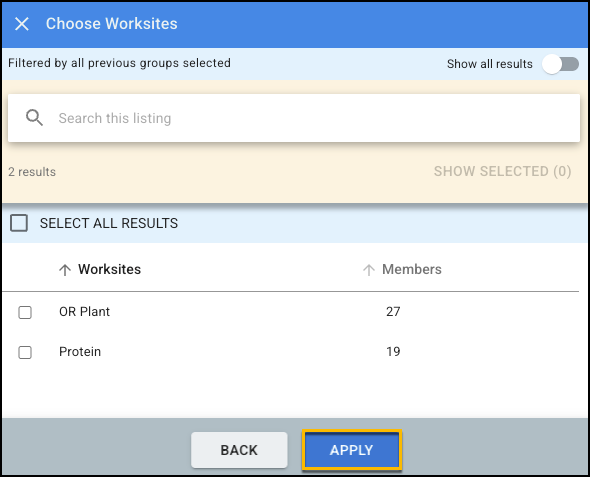 - When starting with worksites, one or multiple worksites can be selected.
