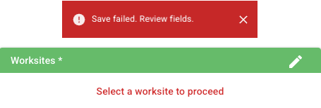 - Worksite(s) must be selected in order to add the dynamic group. You will receive a red ribbon when worksite(s) is missing from the group filters.