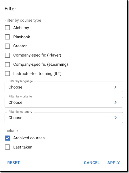- Scroll to the bottom, check the box for including Archived Courses, and click Apply.