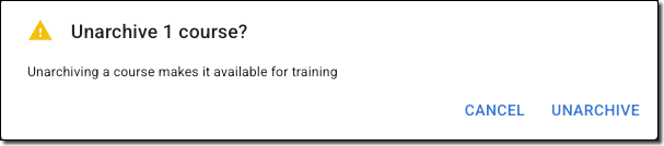 - Click Unarchive, then Confirm you want to unarchive the Playbook course.