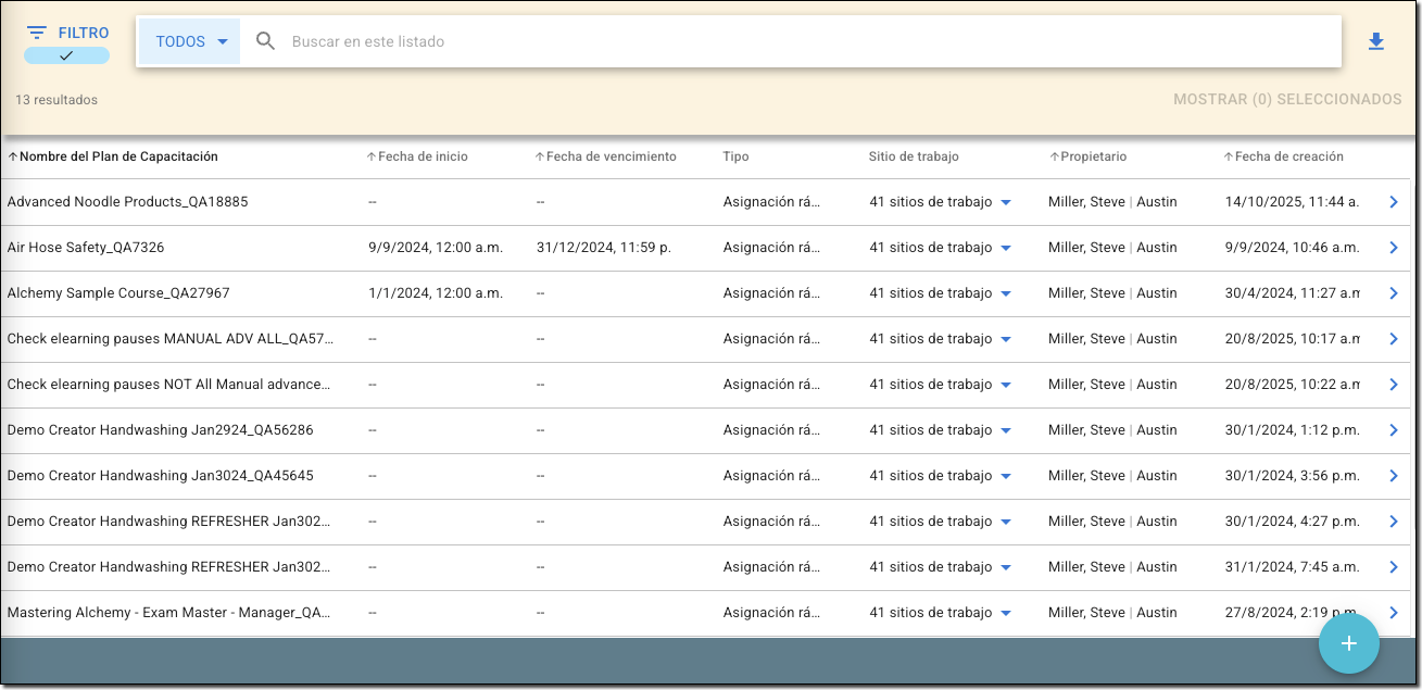 Los Planes de Aprendizaje de Asignación Rápida están ocultos por defecto en el listado de Planes de Aprendizaje. Siga estos pasos para incluir los Planes de formación de asignación rápida en el listado de Planes de formación.