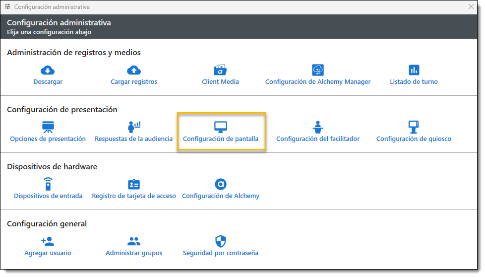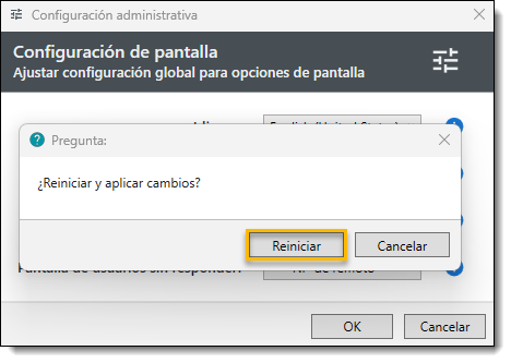Vaya a Configuración de pantalla en la ventana Configuración administrativa.