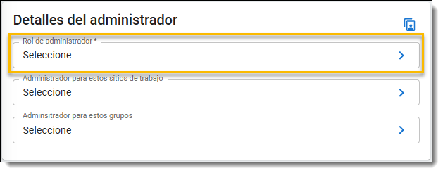 - Seleccione el nivel de acceso administrativo del creador