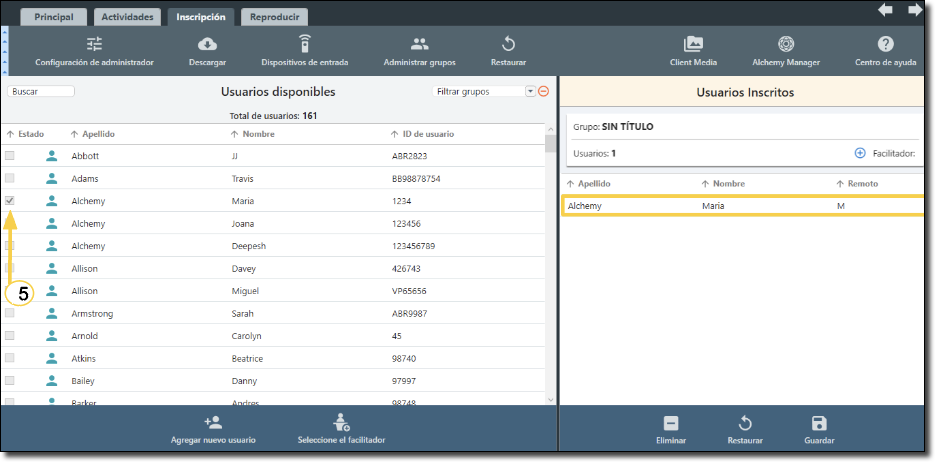 - Vaya a la pestaña Inscripción e inscriba a los usuarios en el curso.