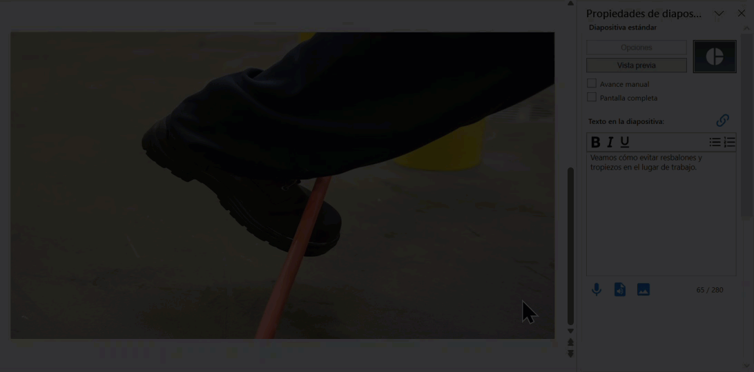 A la derecha del campo Texto de la diapositiva, seleccione el icono