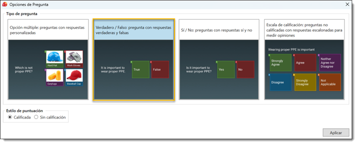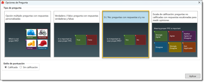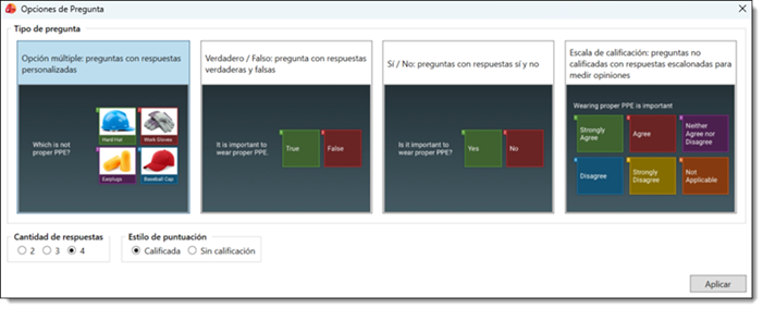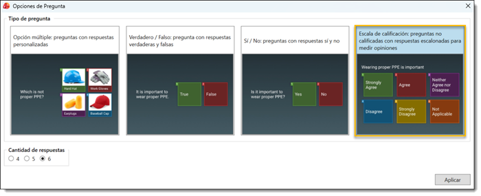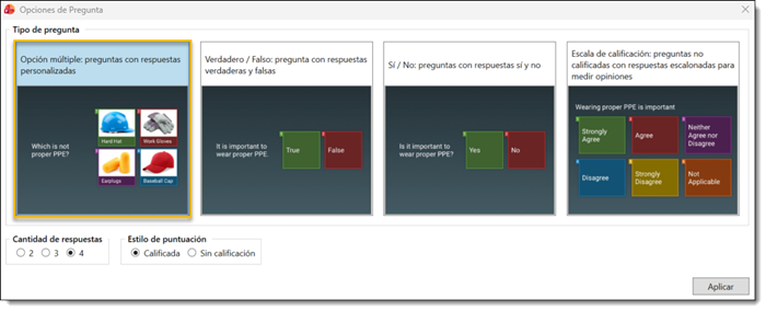 Seleccione un tipo de pregunta y haga clic en Aplicar.