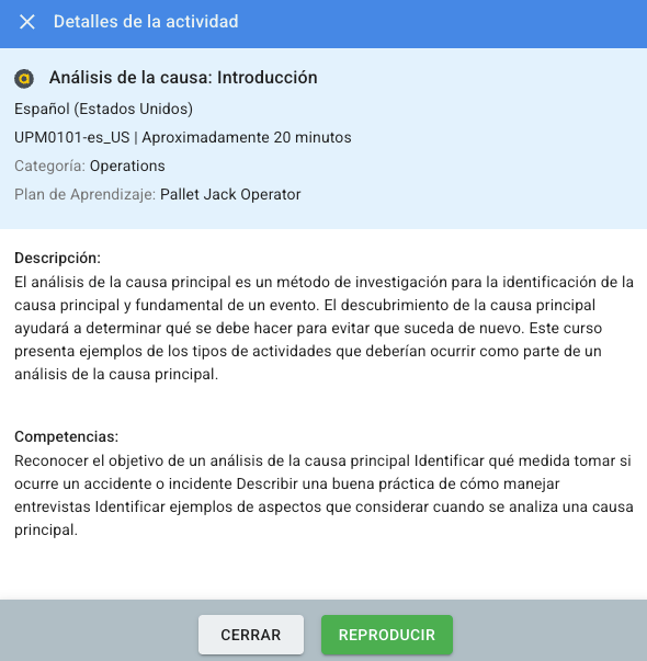 Para reproducir un curso del catálogo de cursos