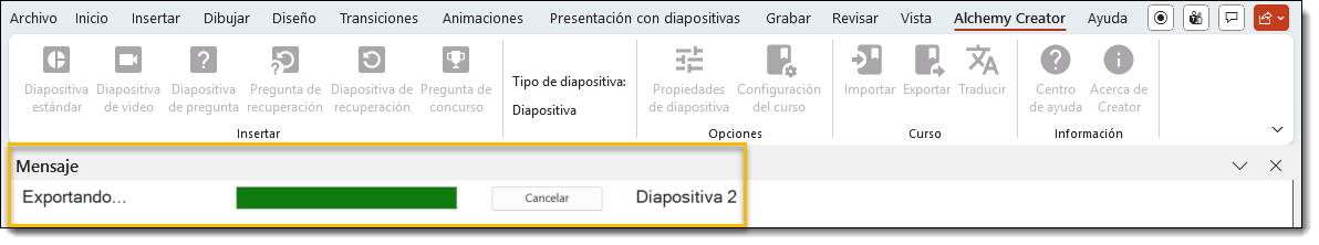 Después de completar tu curso de Alquimia en Creator, el siguiente paso es exportarlo, lo que convierte el PowerPoint en un archivo .sistem. Este archivo independiente se carga en Manager y puede utilizarse para impartir formación en Player, Playbook y eLearning.