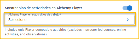 - En la opción Mostrar actividades del plan en Alchemy Player, active el botón.