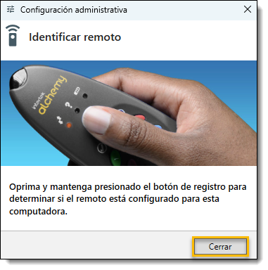 - Mantén pulsado el botón de registro del mando a distancia para determinar si está configurado para su uso.