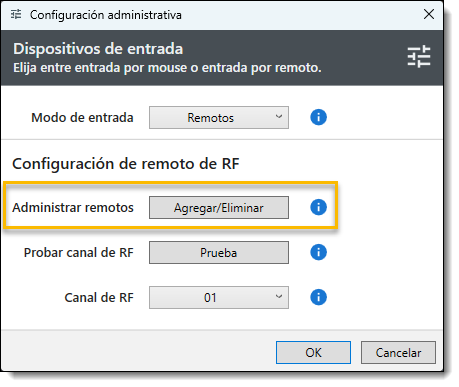 - Para comprobar si un mando a distancia está actualmente registrado en un ordenador concreto, haga clic en el botón Añadir/Quitar.