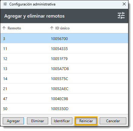 Reinicio masivo de controles remotos