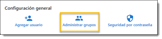 - En Configuración general, haga clic en Administrar grupos. (Aparecerá la ventana Gestionar grupos que incluye una lista de todos los usuarios).