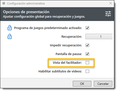 - Haga clic en Mostrar/Ocultar Vista del Facilitador para mostrarla; se le pedirá que introduzca la contraseña de administrador.