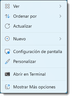 - Haga clic con el botón derecho del ratón en el escritorio y seleccione Configuración de pantalla