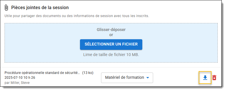 Les ILT permettent de télécharger des pièces jointes vers une session et/ou un utilisateur unique au sein de l'ILT.