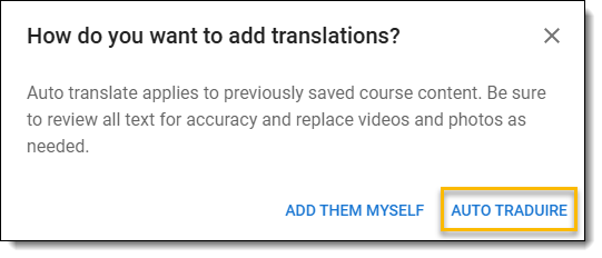 - Une messagerie Ajouter des traductions s'affiche. Sélectionnez TRADUCTION AUTOMATIQUE.