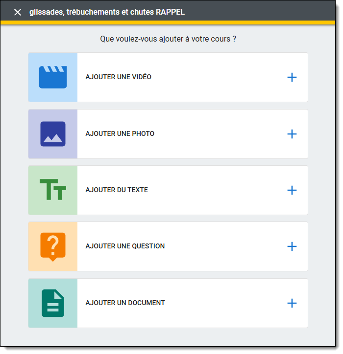 - Sélectionnez le bouton "+" pour créer un nouveau cours.