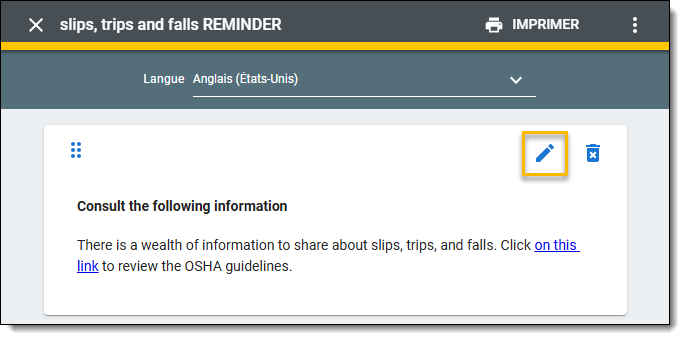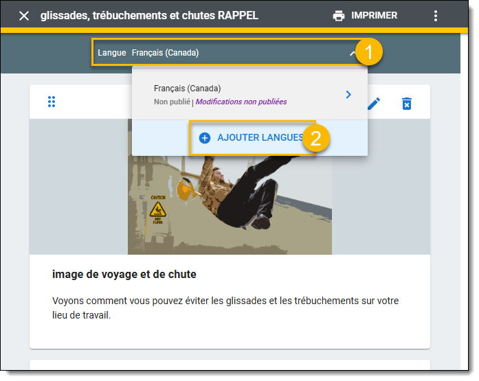 - Le texte sera traduit dans le Playbook. Les médias ajoutés au cours, tels que les documents, les vidéos et les images, devront être traduits avant d'être téléchargés.