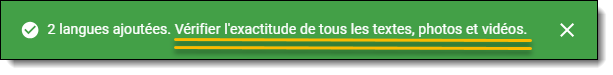 - Si l'enregistrement est réussi, un message vert apparaît en bas au centre de l'écran, accompagné d'une note invitant à vérifier l'exactitude du texte, des photos et des vidéos. N'oubliez pas de consulter la section "Meilleures pratiques" de cet article.