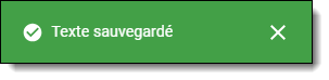 - Si la sauvegarde est réussie, un message vert s'affiche en bas au centre de l'écran.