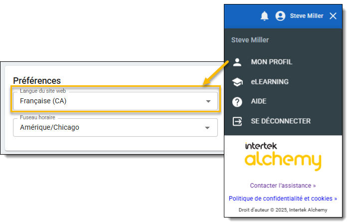 - Vous pouvez également changer la langue du site web dans Mon profil