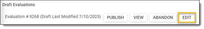 - Si l'évaluation n'a pas été publiée, cliquez sur le bouton Edit à côté de l'évaluation sous l'intitulé Draft Evaluation