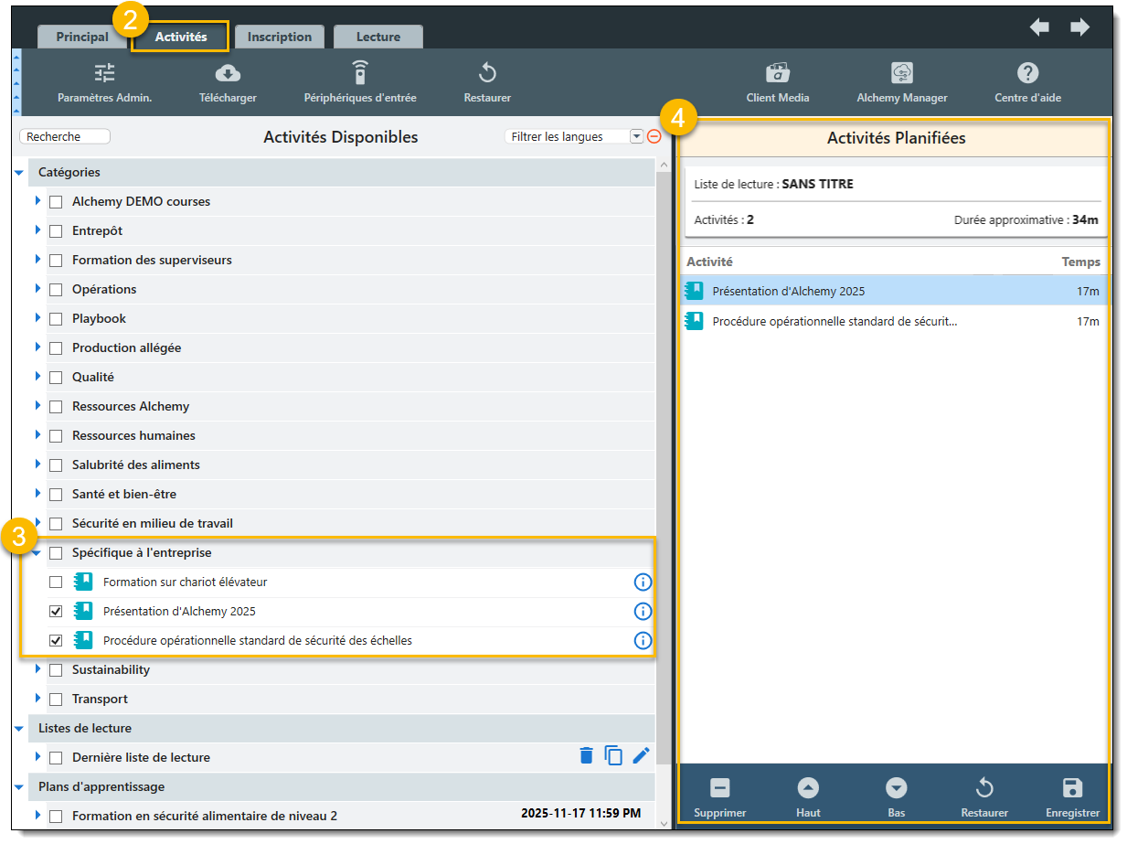- Accédez à l'onglet Activités et développez la catégorie Spécifique à l'entreprise