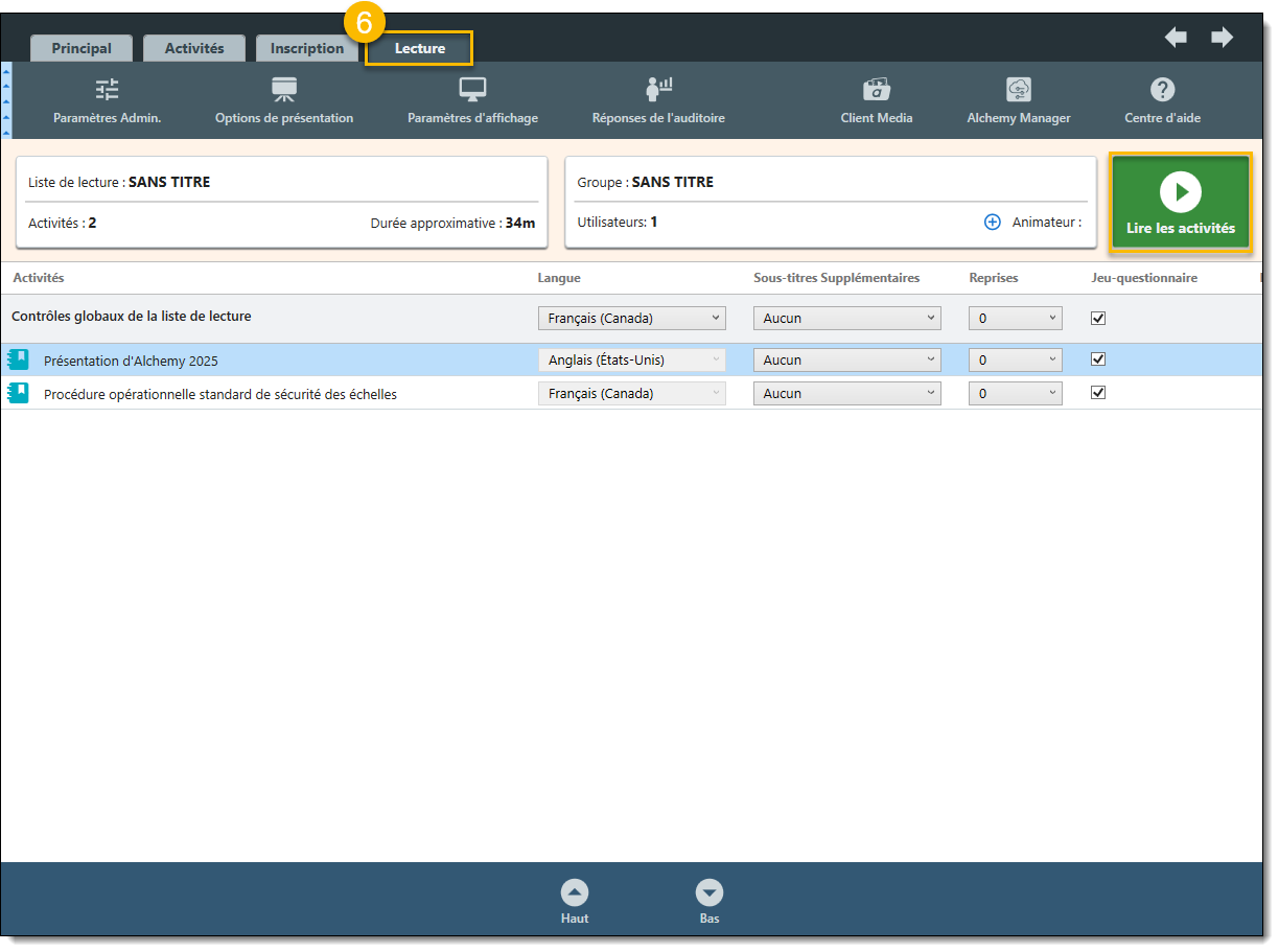 - Naviguez jusqu'à l'onglet Lecture et sélectionnez Lire les activités