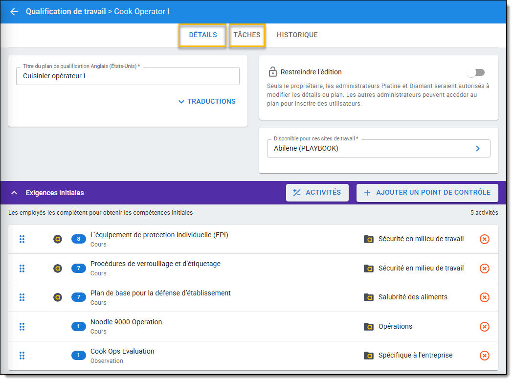 Note: Vous pouvez réviser les qualifications d'emploi dans l'ancienne application Playbook, les instructions peuvent varier.