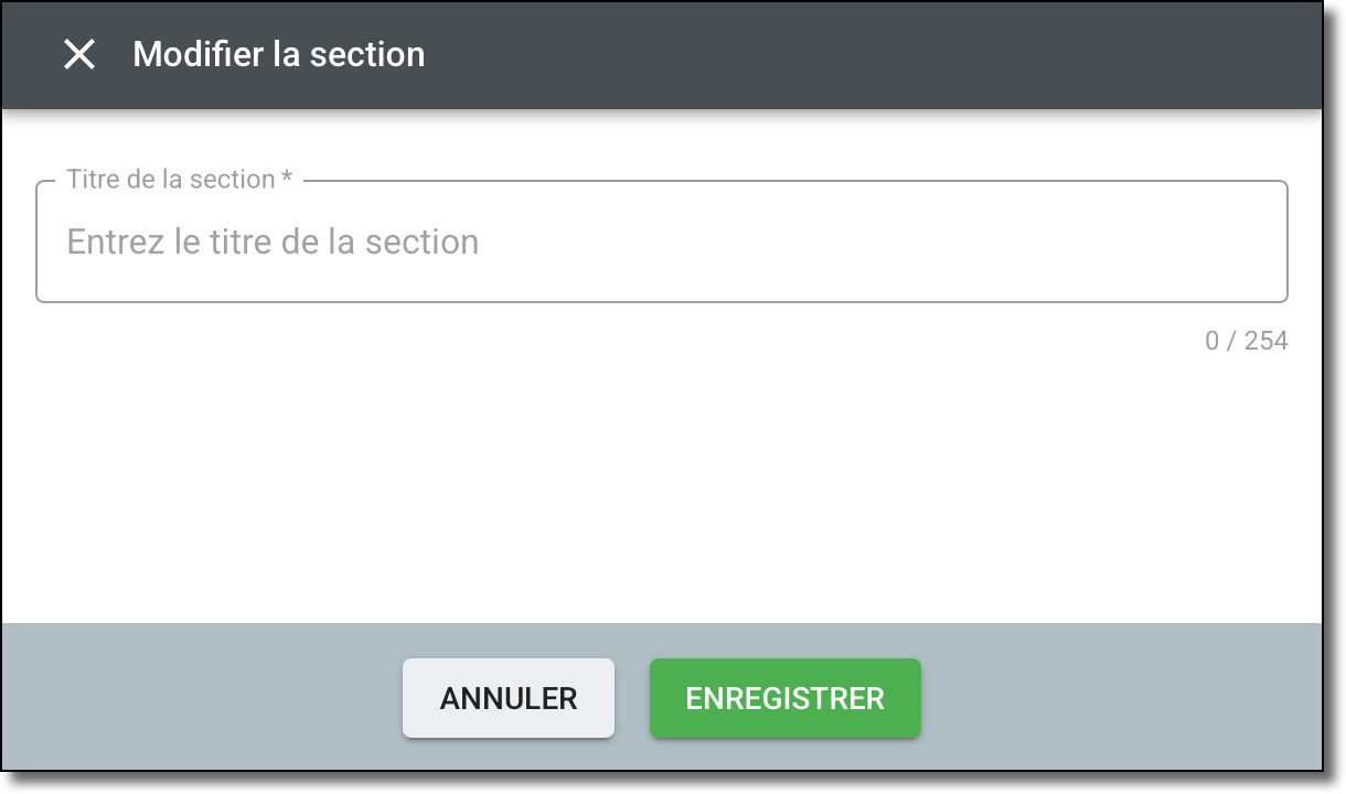 - Saisissez un titre pour la section et sélectionnez Ajouter. La section apparaît à l'écran
