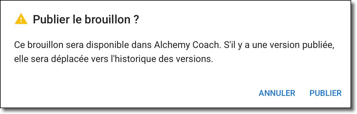 - Cliquez sur Publier pour confirmer que vous souhaitez publier le projet.