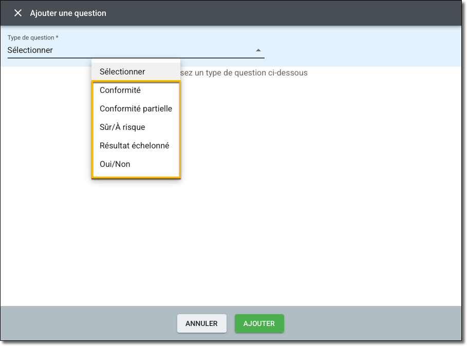 - Sélectionnez un type de question dans le menu déroulant