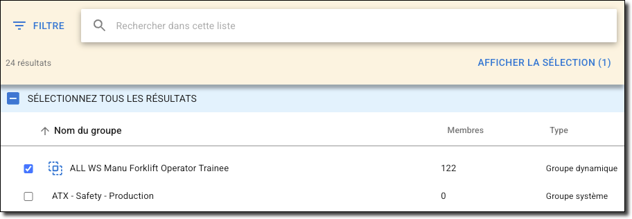 Affectation d'un groupe dynamique à partir d'une qualification professionnelle