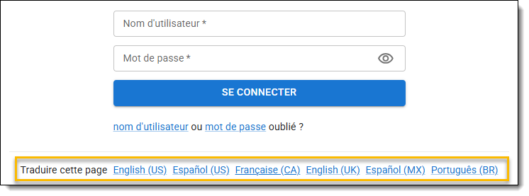 Vous pouvez traduire la page de connexion en: