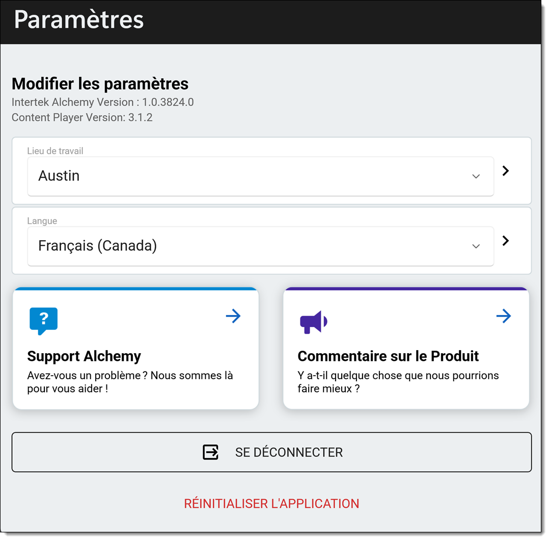 Modifier l'espace de travail de l'application Intertek Alchemy
