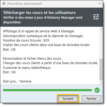 - Une fois que l'état de la synchronisation est terminé, sélectionnez Suivant.
