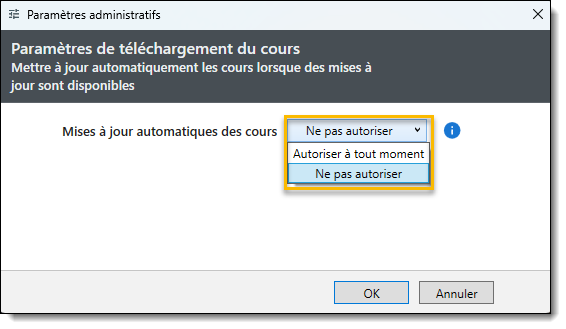 - Sélectionnez Ne pas autoriser pour désactiver le téléchargement automatique des cours.