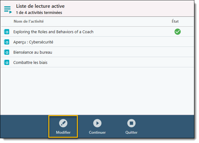 - Naviguez jusqu'à l'onglet Lecture et sélectionnez le bouton Lire les activités.