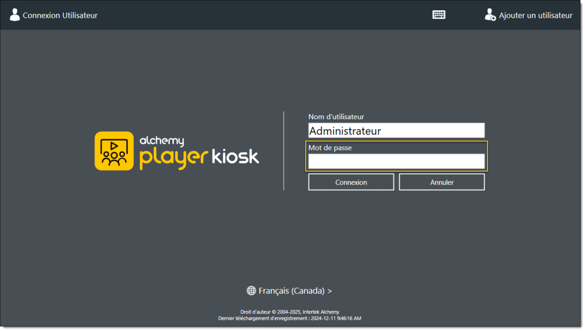 En mode kiosque, sélectionnez le bouton Connexion Admin