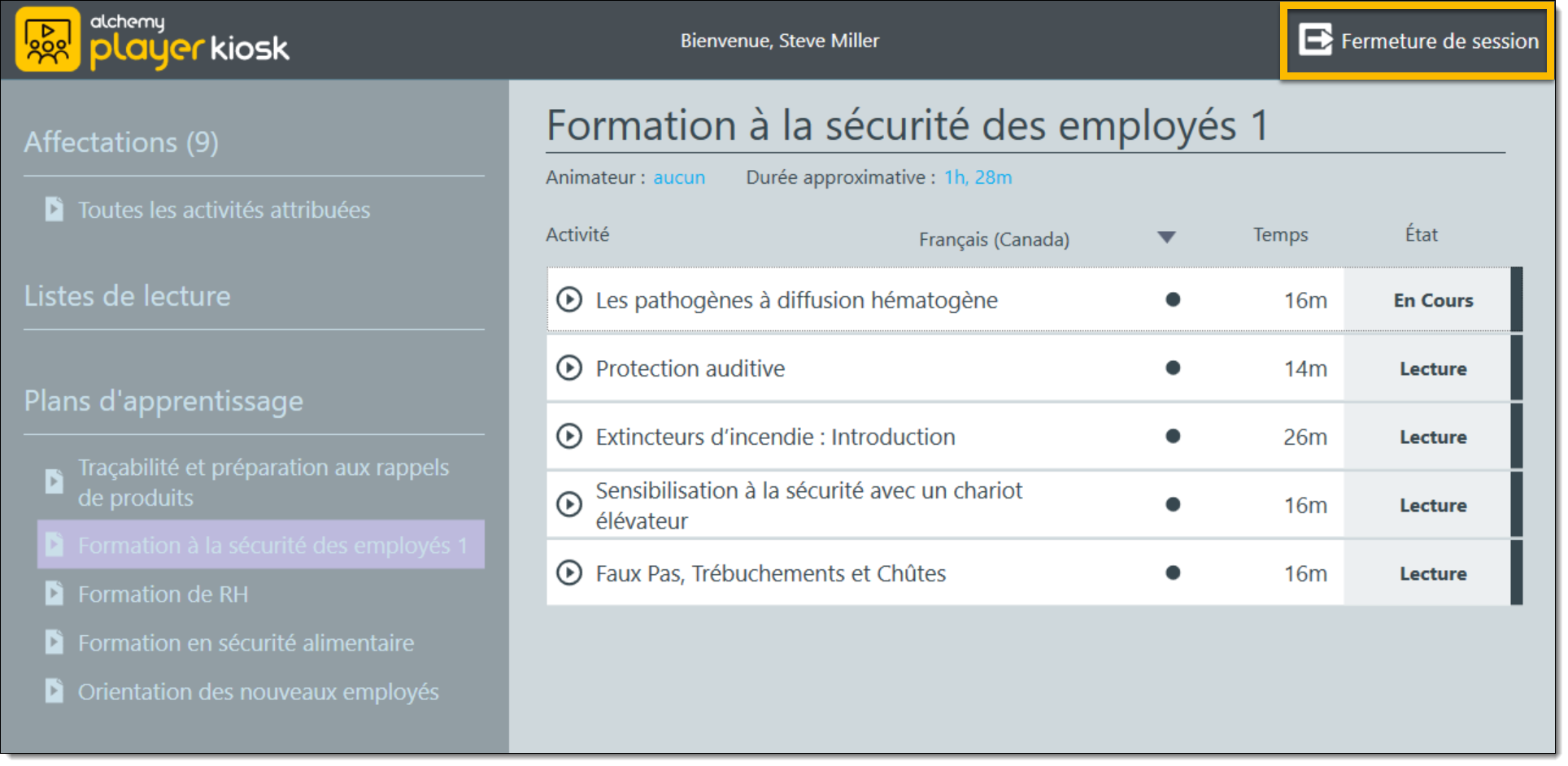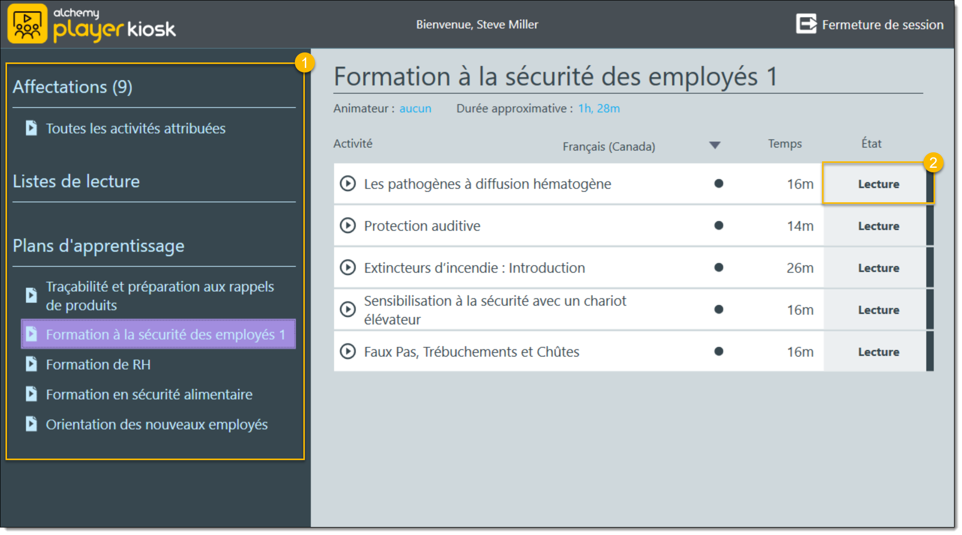 - Une seule liste de lecture ou de plans d'apprentissage peut être sélectionnée à la fois.